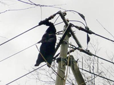 日本一只黑熊误咬电线死亡 据日本共同社18日报道,日本岩手县雫石町长山的树林内...