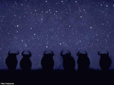 一群牛羚面对星空屹立在肯尼亚马赛马拉平原上 这群大象缓慢从马赛马拉平原上走...