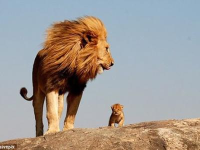 这幅坦桑尼亚的狮王父子照片与《狮子王》有惊人相似之处 迪斯尼动画《狮子王》...