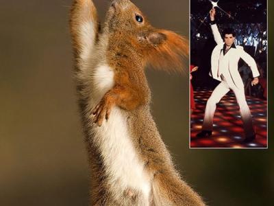 可爱的红松鼠挥舞着自己的小爪子,其夸张的造型让人想起了《周末狂热》中的约翰·...