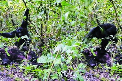 一只雄黑猩猩袭击并杀死另一只黑猩猩的现场画面 尽管历经了至少500万年彼此分离...