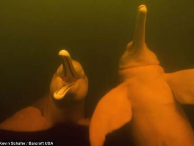 美丽的亚马逊粉海豚 粉海豚皮肤的颜色会随着年龄加深 亚马逊河流域流传着这...