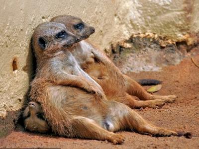 两只猫鼬坐在同类身上晒太阳 2010年4月28日消息,73岁的摄影师Charlie Summers日...