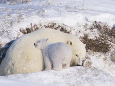阿拉斯加北极熊母子温馨依偎 美国环境学家卡兹洛斯基日前在...