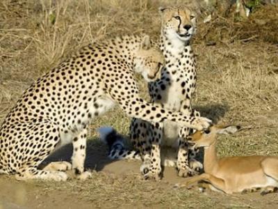 非洲猎豹和小羚羊和睦相处