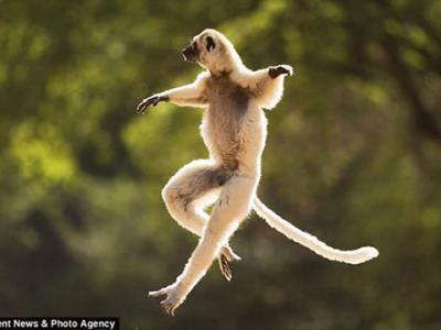 马达加斯加的维氏冕狐猴在空中的姿态十分优雅 翩跹起舞的维氏冕狐猴 翻跟斗...