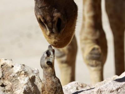 猫鼬向长颈鹿索吻