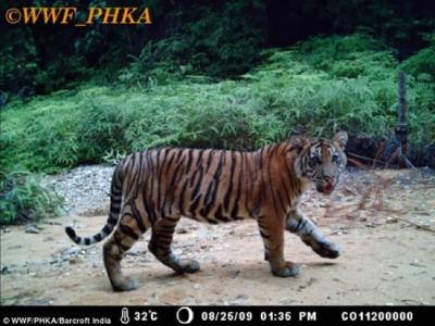 丛林隐藏摄像机拍到雌苏门答腊虎及幼崽