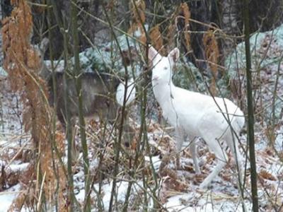 马西莫·德尔·丁父女在意大利野外发现了这只患白化病的野生幼鹿 白化小鹿紧跟...