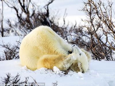 北极熊雪地翻筋斗