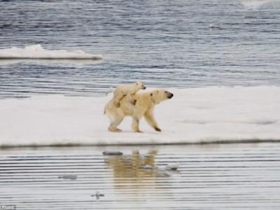 北极熊妈妈背小熊 据英国《每日邮报》报道,近日一名游客在挪威海域拍下了一...
