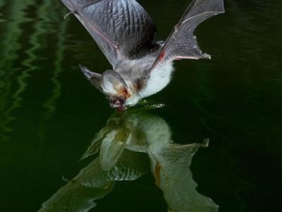 摄影师拍摄到蝙蝠俯冲喝水镜头