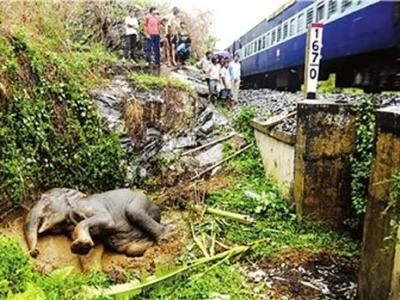 4月23日,在印度东北部阿萨姆邦,一只大象被火车撞伤。当火车经过时,一队由25只...
