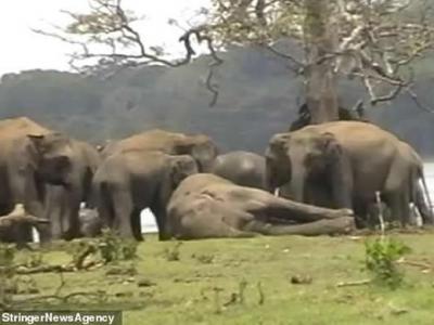 斯里兰卡的卡拉威瓦动物保护区象王战败死亡后 300头大象前往河...