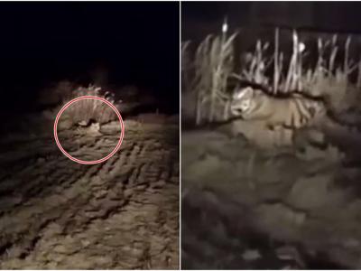 黑龙江抚远市镇西村树林中发现野生东北虎 村民:目测有200公斤...