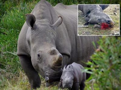 南非一头在禁猎区生活的雌性白犀牛惨遭杀