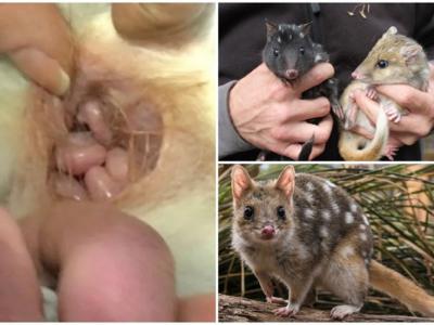 澳洲保育人员发现放生的东袋鼬在野外产子。在母亲袋子里的小东...