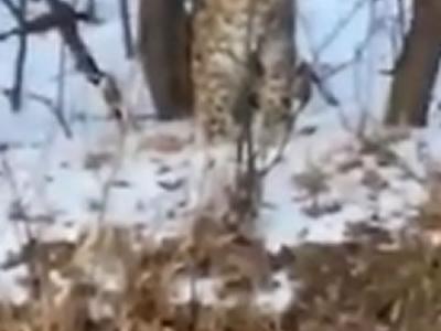 俄罗斯滨海边疆区过路汽车记录仪拍到地球上最稀有的猫科动物—...