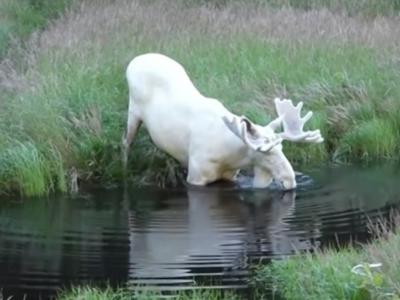 瑞典男子在韦姆兰省拍到极罕见白色驼鹿