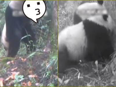 保护区拍到有大熊猫(左)在一棵杉树边小便标记地盘...