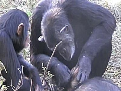 送别逝世养子 赞比亚黑猩猩妈妈亲密洗牙