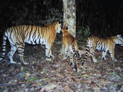 泰国东部丛林相机2016年拍到4只母老虎和