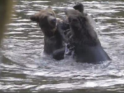 加拿大卑诗省小灰熊打斗 熊妈妈现身调停