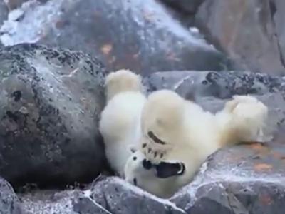 加拿大北极熊赖床不起 懒洋洋打呵欠好可爱