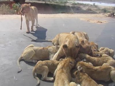 南非克鲁格国家公园两只母狮疑因争夺食物