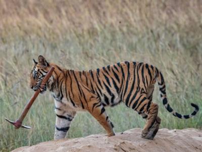 老虎口叼铁镐。老虎之后换上了一个橙色胶盘老虎最后...
