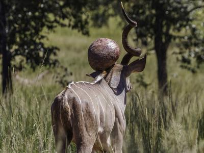 南非一头条纹羚羊角折断长出“角球” (神秘的地球报道)南非出现了一头与...