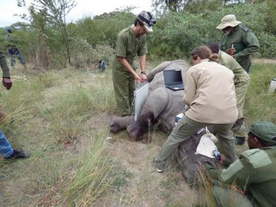 兽医为犀牛妈妈照X光确认伤势 子弹深入犀牛的脚 它在盗猎者的追击中被子弹...