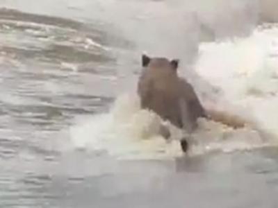 肯尼亚摄影师座驾挡住雌狮的去路,导致狮子被冲落瀑布生死未卜 视频:...