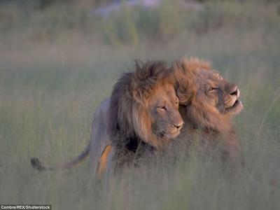 博茨瓦纳宽度河保护区两只雄狮居然亲密缠绵尝试交配 (神秘的地球报道)...