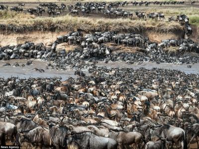 肯尼亚马赛马拉8万牛羚大迁徙 两斑马误闯