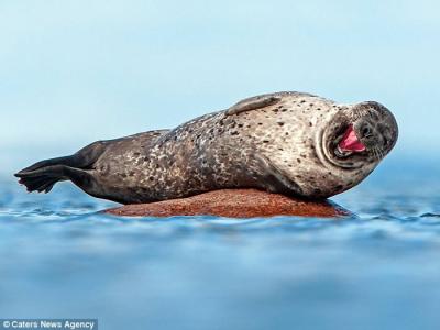 瑞典小岛一只“世上最开心的海豹”