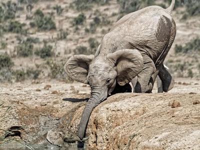 南非Addo大象国家公园大象妈妈救助受困泥