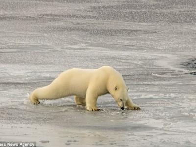 加拿大北极群岛北极熊展现机智:平铺身体借腹部滑过薄冰 (神秘的地球报...