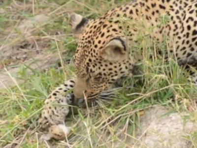 南非克鲁格国家公园猎豹与捕获的小鸟逗趣玩耍 (神秘的地球报道)据...