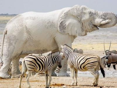 “大白象”与斑马相映成趣 泥泞及方解石沙残留在大象身上 (神秘的地球报道)...