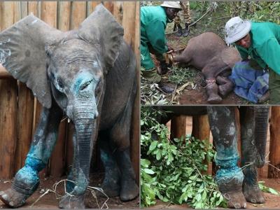 肯尼亚小象被捕兽器夹脚险死 终得保育组