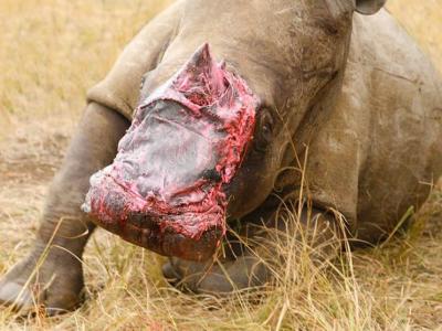 南非犀牛遭锯角留重创 移植大象皮疗伤
