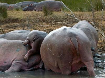 南非沼泽地小河马极力挤进成年河马群让人忍俊不禁 (神秘的地球报道)...