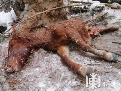 被袭击的母马尸体 挂在树丛上的虎毛 雪地上清晰的虎爪印 (神秘的地球报道...