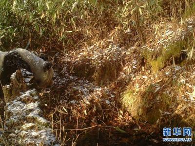 陕西平河梁国家级自然保护区公布的显示拍摄于2014年11月17日的野生大熊猫夜间活动...