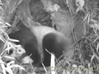 用红外线触发相机记录到野生大熊猫抚育幼子过程 (神秘的地球报道)大熊猫抚育宝...