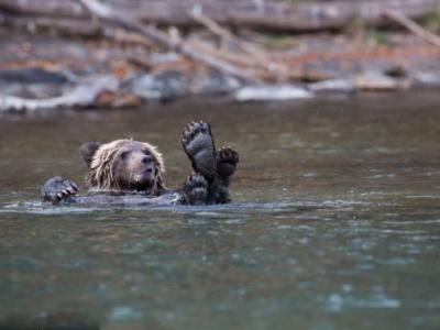 小灰熊悠闲平躺水面似动画角色 (神秘的地球报道)据环球网(实习编译:谭...