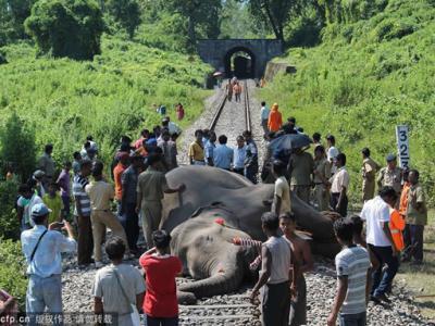 印度孟加拉邦:一头大象被快速行驶的列车撞死 印度孟加拉邦:一头大象被快速行...