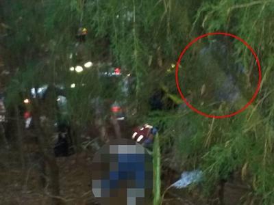 克拉里声称该光团是一位天使(红圈示)。 汽车上铲上大树(左图),车门飞脱(...