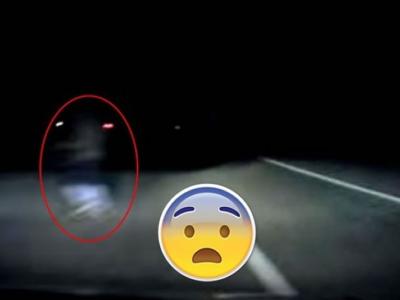 公路上出现神秘“鬼影”(红圈) 幸好司机及时避开,才没撞上“女鬼”。 (神...